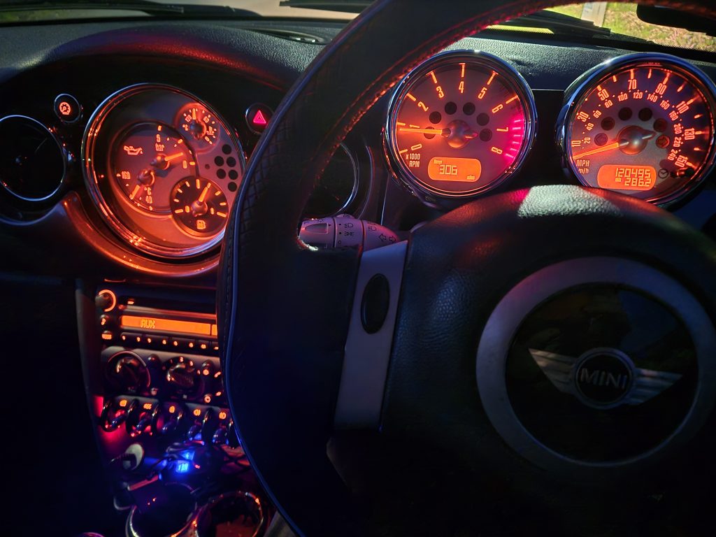 The Cockpit Chrono Pack is one of those rare factory options that transforms the feel of the cabin and adds genuine collector appeal. It’s one of the most desirable interior upgrades an R50 can have.